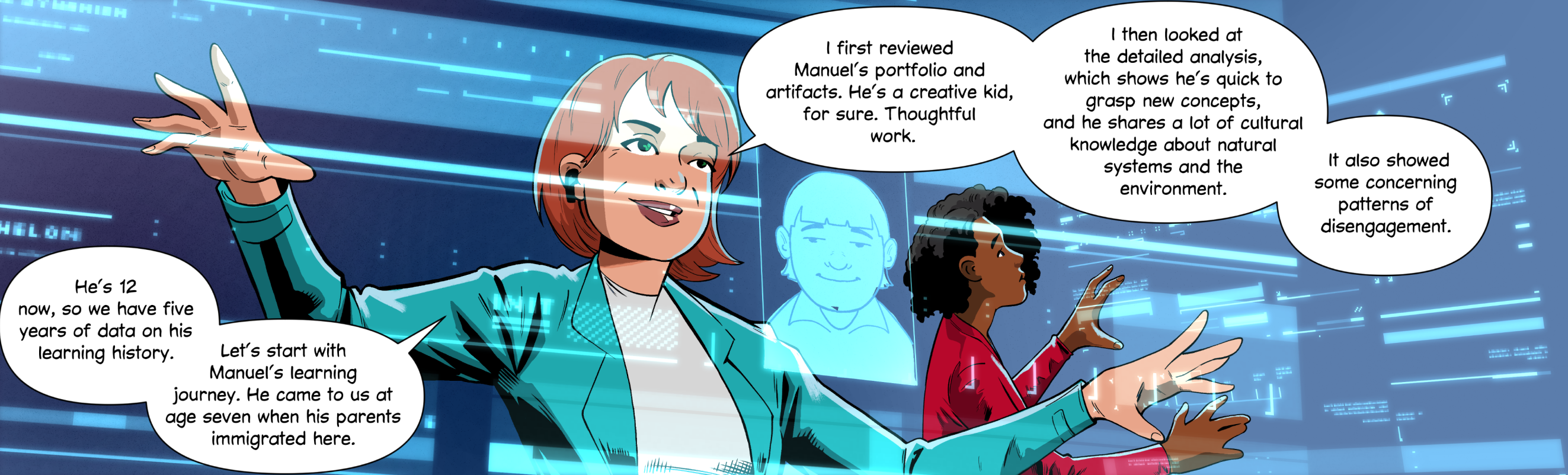 Explore four possible futures and dive into over twenty vivid, visual scenes that demonstrate what assessment might look and feel like in the future.